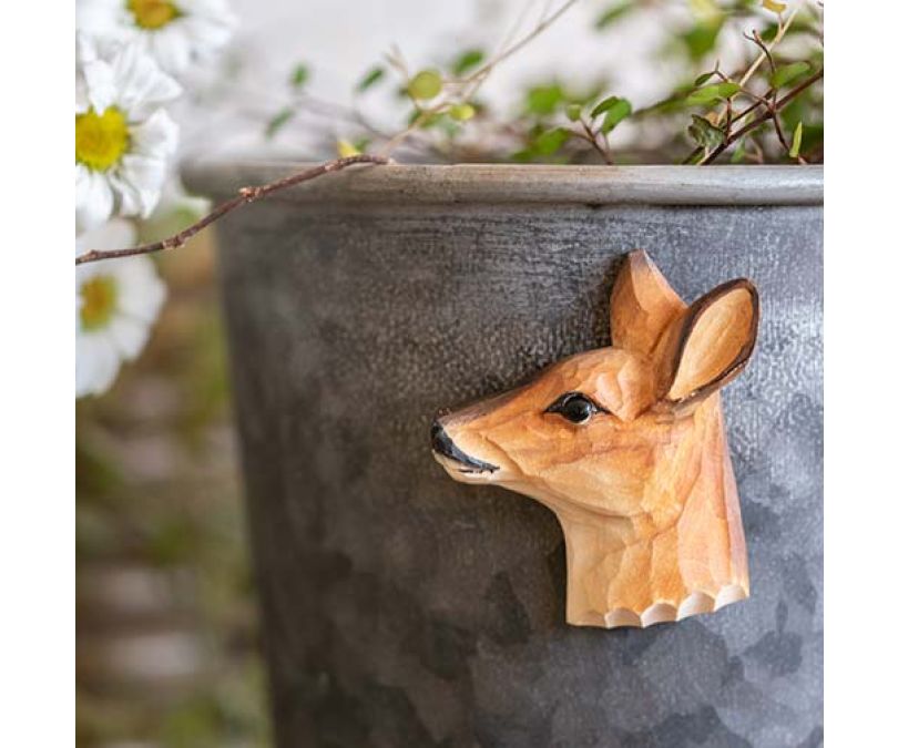 Magnesy na lodówkę z ręcznie rzeźbionymi głowami zwierząt w drewnie i magnesem z tyłu są inspirowane naturą. Praktyczny i ładny detal do Twojej lodówki, białej tablicy lub innej metalowej powierzchni. Piękna i pełna wdzięku sarna o dużych, ciemnych oczach to jedno z najbardziej ukochanych zwierząt.
